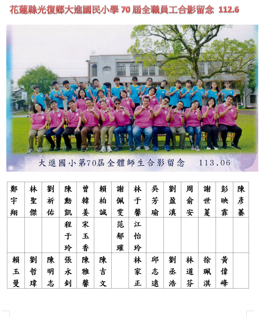 大進國小歷屆畢業校友芳名錄
